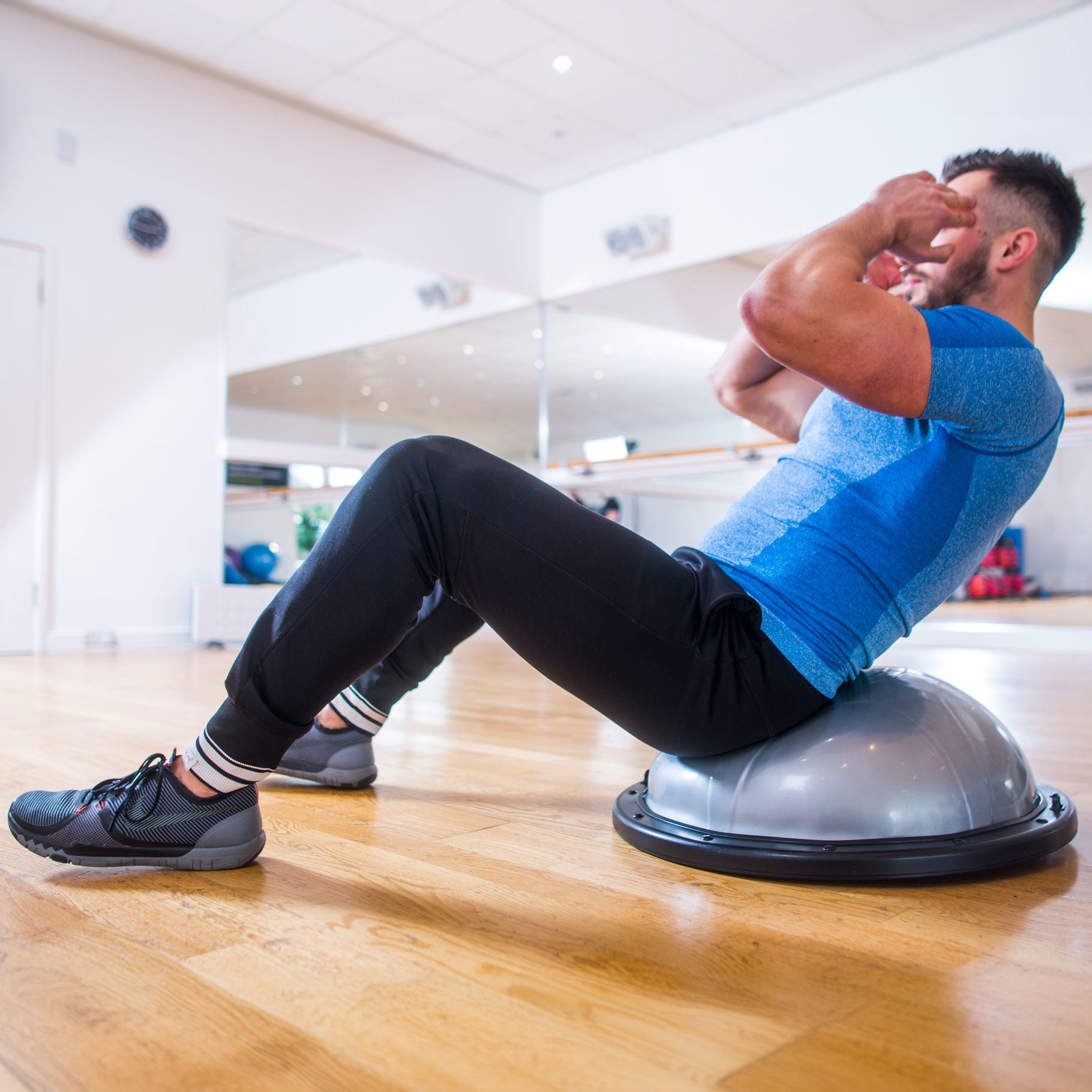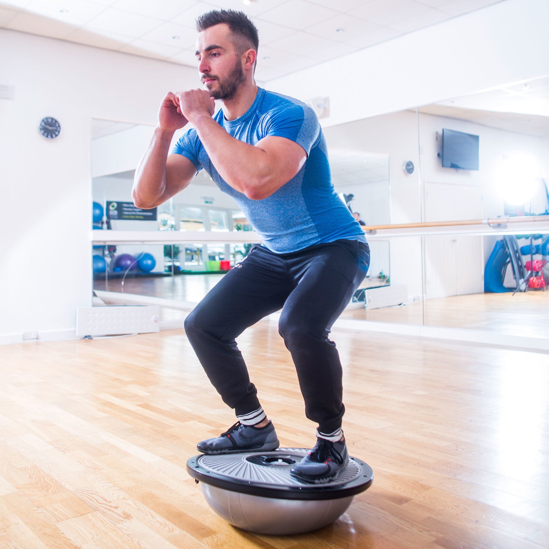 - Use as a wobble board or 'half' Swiss ball/stability cushion