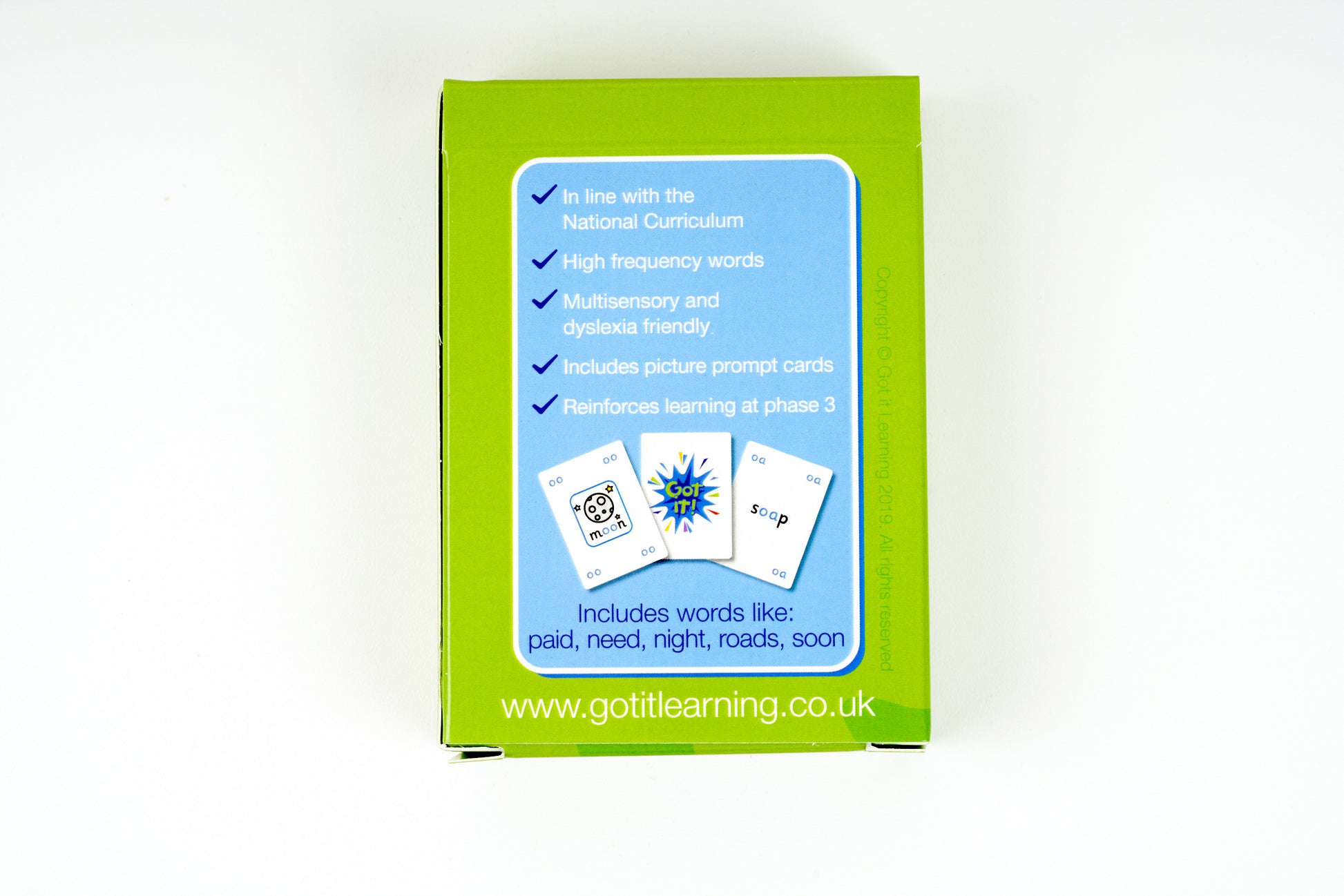 In each pack of Got it cards there are five, fun phonic reading and spelling games which are : Word Race, Word Pairs, Word Match, Word Sets and Word Switch. Players will have so much fun, they will learn how to read and spell without even realising.Got it games are designed by an experienced teacher. Using a multi-sensory approach to identify the sounds in words will create the building blocks to independently read and spell important high frequency words. The Picture Prompt cards help link the sound to the picture, supporting independent learning. Simple, clear font with focus sounds in blue. The Got it cards act as joker cards, giving all players a chance to win right up to the end. These cards ensure that every player maintains engagement.