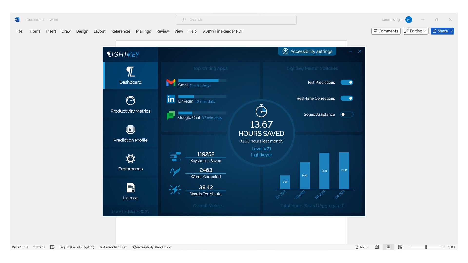 Built for accessibility and productivity, Lightkey provides clear, context-aware suggestions and helpful metrics that show your keystrokes saved and time gained — motivating for learners and useful for evidencing impact in education and workplace settings.