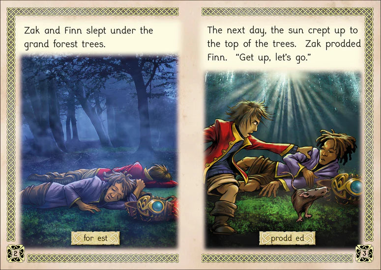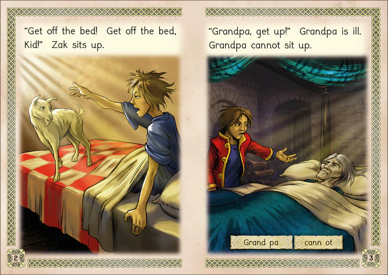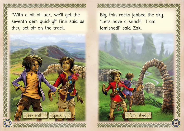 When Zak's grandfather falls ill, Zak must go on a quest to find ten magical gems to help cure him. This action-packed quest story takes the reader from CVC and CVCC word text through to alternative consonants, consonant digraphs and suffixes -ed and -ing.