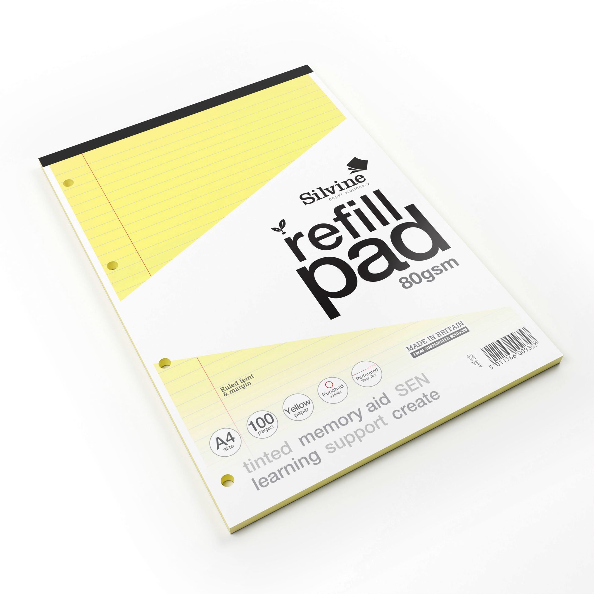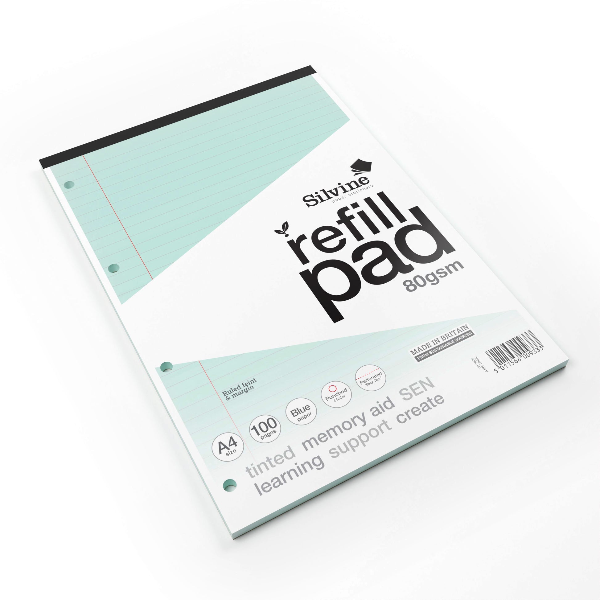 Silvine A4 Tinted Paper Dyslexia Refill Pad - Lined with Margin