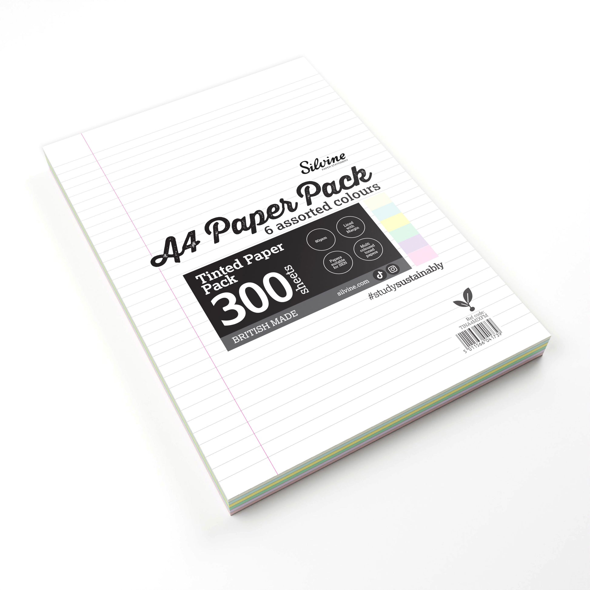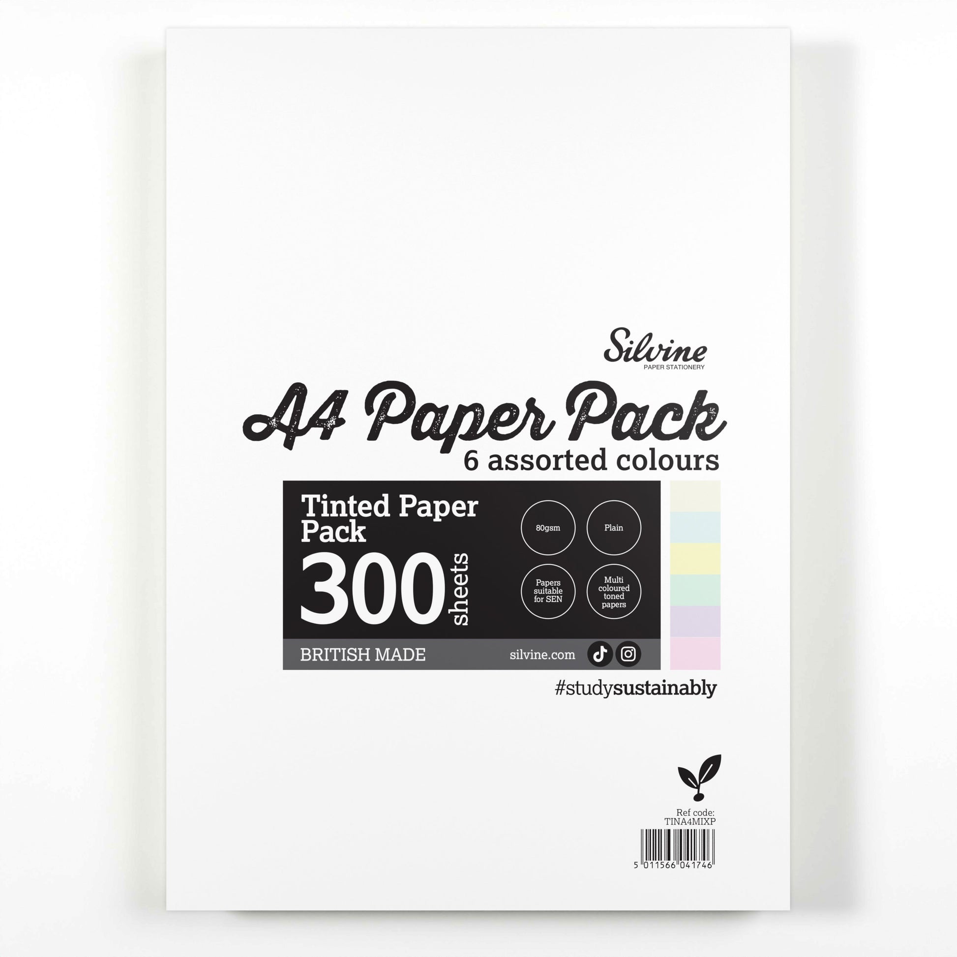 Silvine A4 Tinted Paper Pack – 300 Sheets 6 Colours
